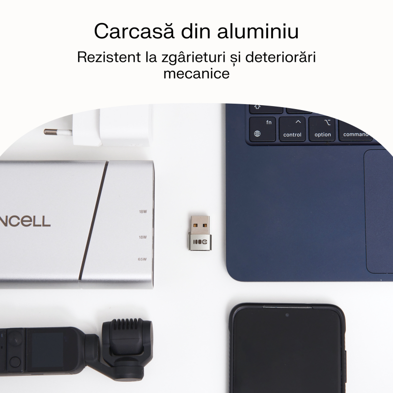 și construcție rezistentăAdapterul a fost fabricat din aluminiu de înaltă calitate și materiale solide, fiind rezistent la zgârieturi și daune mecanice. Asigură fiabilitate și păstrează un aspect modern chiar și la utilizare intensă. Forma sa simplă și modernă face ca adaptorul să se potrivească perfect cu cele mai recente dispozitive mobile și computere.