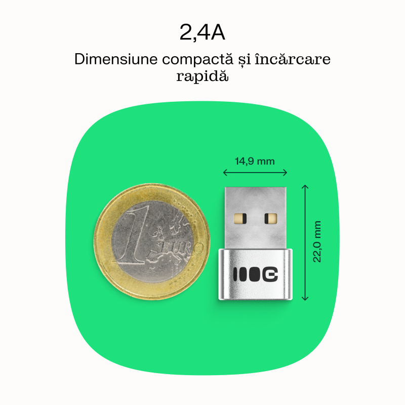 putere mareAdapterul este compact și ușor, putând fi pus în buzunar sau în cea mai mică geantă. De asemenea, suportă încărcare rapidă și stabilă de 2.4A.