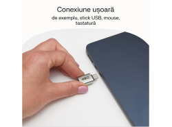 Adaptorul permite conectarea ușoară a dispozitivelor cu port USB-A tradițional la echipamente echipate cu noul conector USB-C. Astfel, poți utiliza fără probleme stick-uri USB, tastaturi, șoareci sau cabluri USB-A, chiar dacă echipamentul tău are doar noul conector USB-C. Este o soluție convenabilă și practică, care crește funcționalitatea dispozitivelor tale.