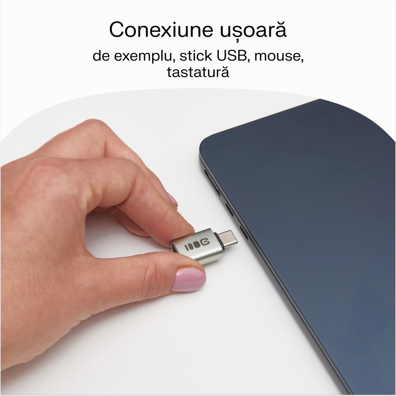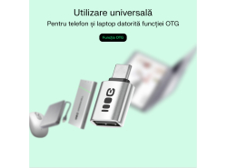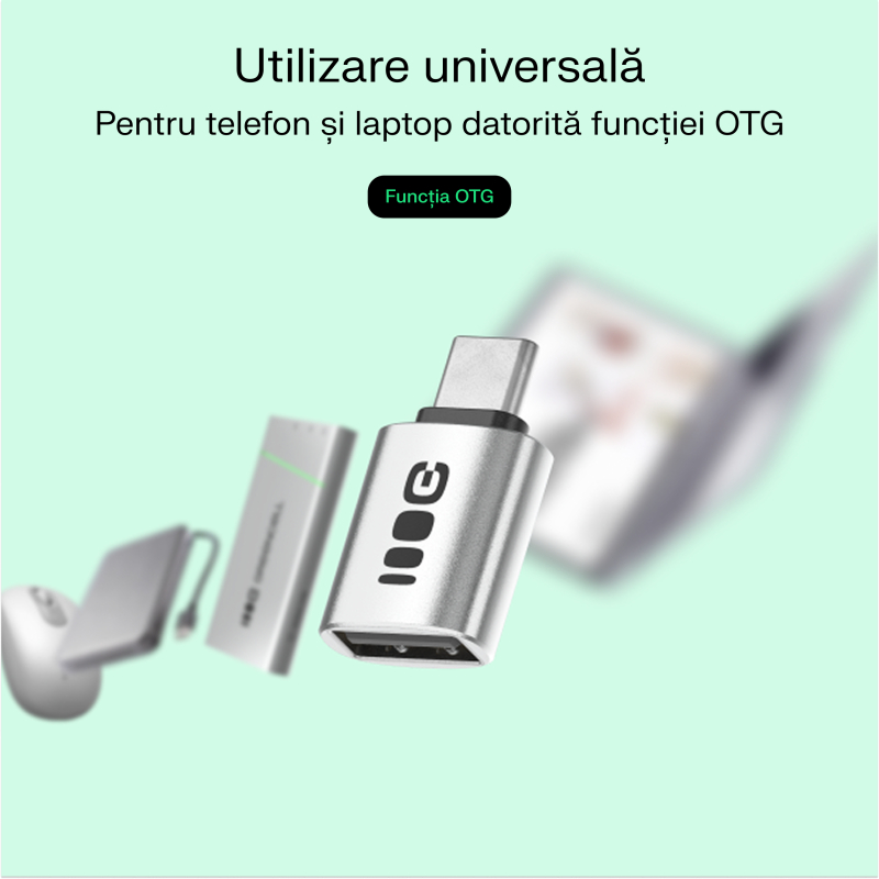 Adaptorul funcționează atât cu smartphone-uri, cât și cu laptopuri. Datorită funcției OTG, permite conectarea unui stick USB, a unei tastaturi sau a unui șoarece la telefon, oferind o experiență la fel de confortabilă ca pe un computer.