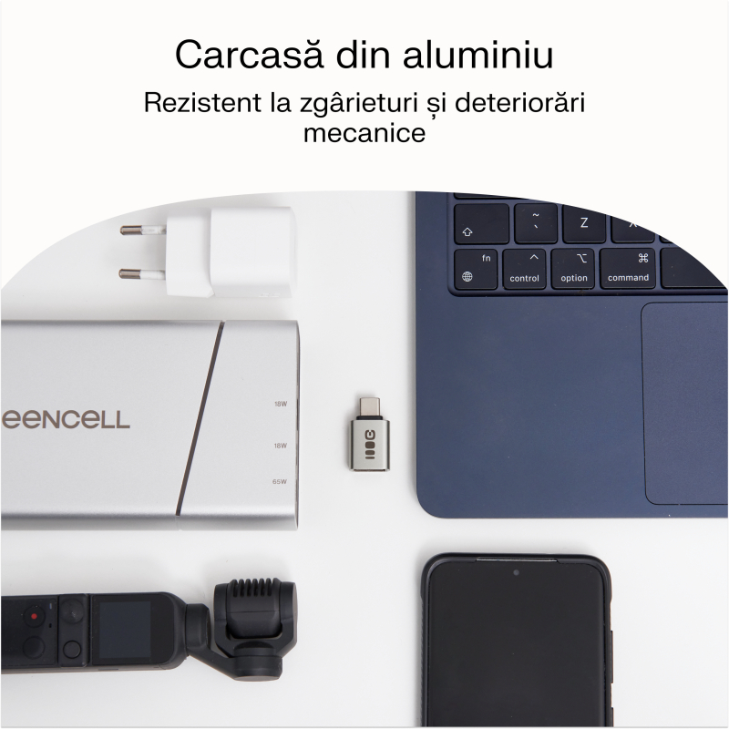 Adaptorul este fabricat din aluminiu de înaltă calitate și materiale solide, ceea ce îl face rezistent la zgârieturi și daune mecanice. Oferă fiabilitate și păstrează un aspect modern chiar și în condiții de utilizare intensă. Forma sa simplă și modernă face ca adaptorul să se potrivească perfect cu cele mai recente dispozitive mobile și computere.