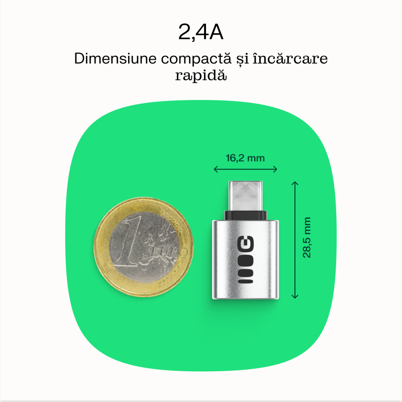 Adaptorul este compact și ușor, așa că se încadrează în buzunar sau chiar în cele mai mici genți. În același timp, suportă încărcarea rapidă și stabilă de 2.4A.