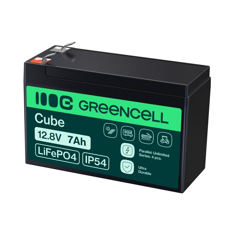 Green Cell CUBE LiFePO4 Baterie 7Ah 12.8V 89.6Wh litiu-fier-fosfat pentru UPS, Alarmă, jucărie, CCTV Mașină pentru copii