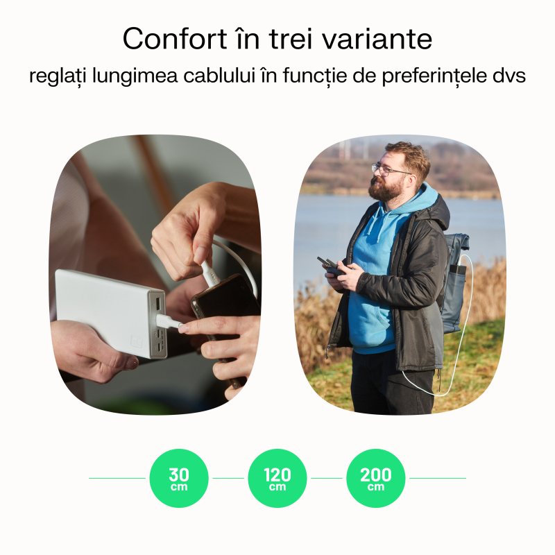 • Durabilitate excepțională – PowerStream 100 W este realizat din nylon rezistent, asigurând rezistență la provocările zilnice, cum ar fi îndoirea, ruperea sau răsucirea cablului
